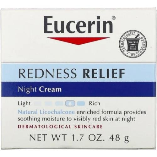De Eucerin Redness Relief Nachtcrème is een zachte, intens kalmerende nachtverzorging die speciaal is ontwikkeld om roodheid, irritatie en een onrustige huid zichtbaar te verminderen.